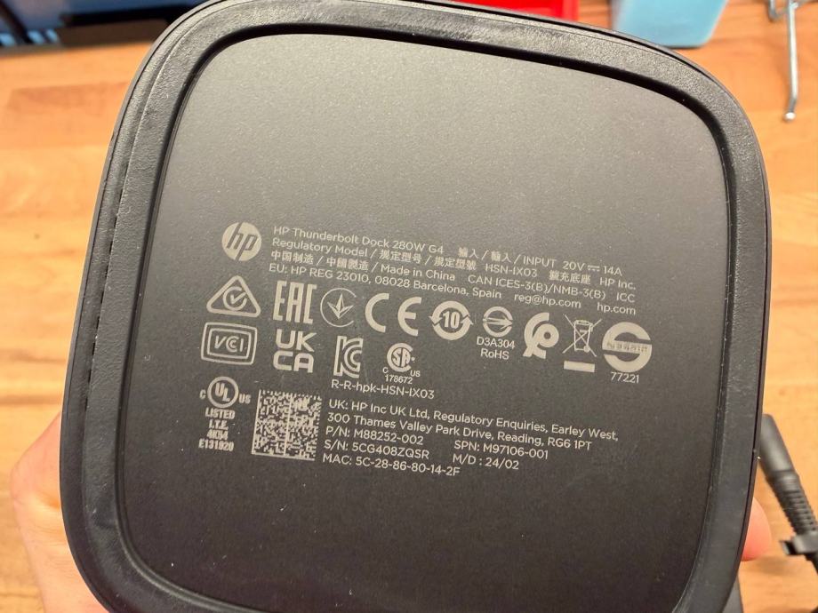 HP Thunderbolt 280W G4 Dock + 280W adapter - windows, MacOS
