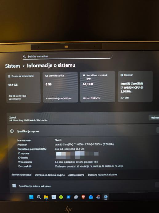 Prodam prenosno delovno postajo HP Zbook Fury G7 z naslednjimi specifikacijami: