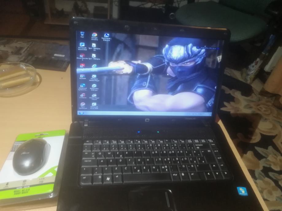 Prodam odlicno ohranjen i brezhibno delojoc prenosni racunalnik hp compaq model 615,nalozen win7 ultimate s vsemi programi slovenski meni lahko nalozite tudi drugi operaciski sistem 8-10, disk 500gb, ram 4gb, 15,6 incen, procesor amd turion x2 dual core, graficna nvidia, lahko se uporablja za gledanje filmov, brckanje po net, spilat kaksno igrico, solske opravke, camero, zdravn polnilec i novo misko, prosim resni klicete 070 254 365 cena je zadnja