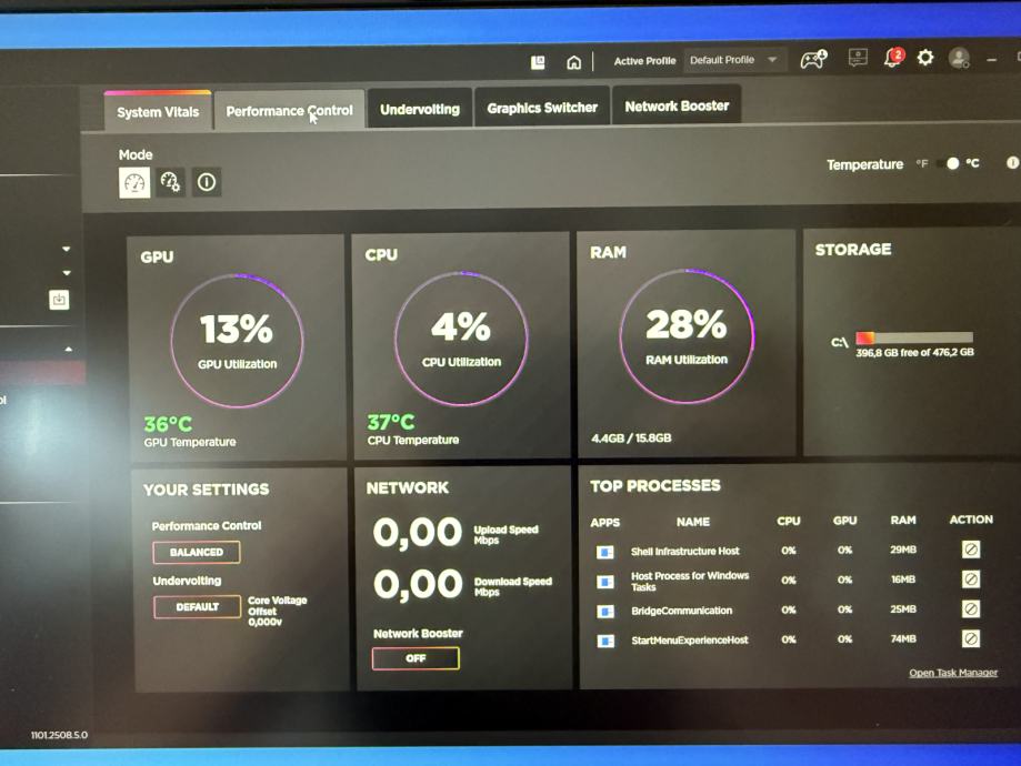 Prenosnik je bil uporabljen za igranje zahtevnejših iger ter video produkcijo (Premiere Pro, DaVinci Resolve).