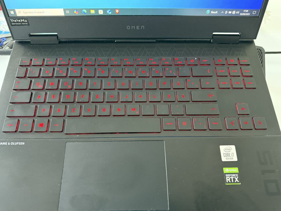 Tipkovnica je nemška QWERTZ, saj je bil prenosnik kupljen na Amazon.de. Ima rdečo osvetlitev tipkovnice ter vrhunske vgrajene zvočnike Bang & Olufsen.