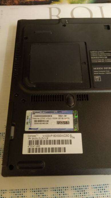 Prodam lepo ohranjen Evo Compaq N1020v. Prenosink je primeren za zbiratelje, ni znake uporabe.Deluje brezhibno, namesto diska ima IDE-SD konverter za SD kartice, baterije ne polni. ostalo deluje brezhibno.