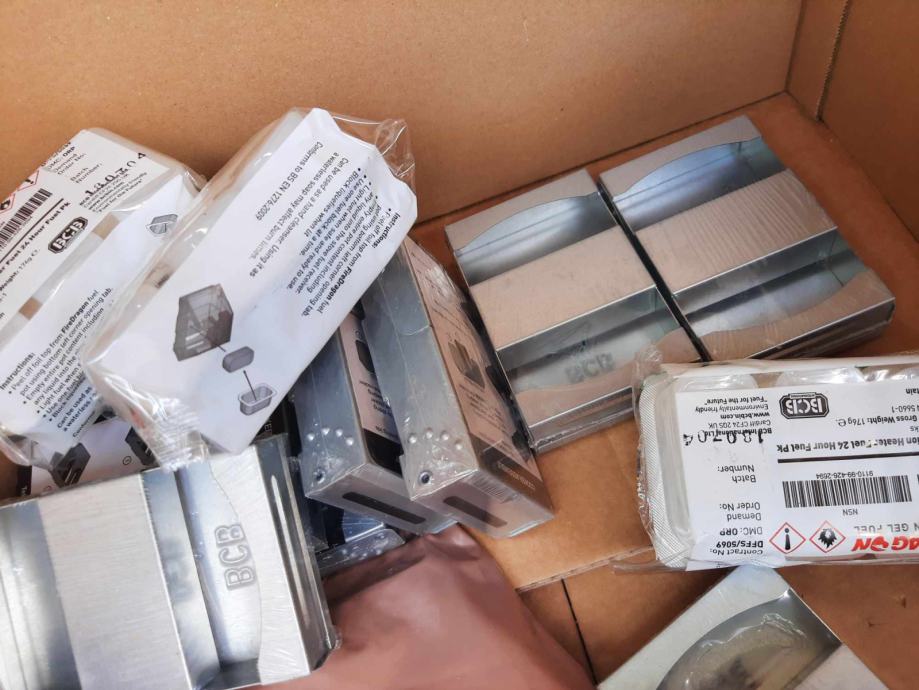 Na voljo angleški bojni obroki (MRE), pakirani v kartonskih škatlah, v kateri je 10 vrečk - obrokov.
