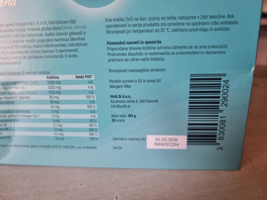 Prodam 2 škatli Unik Kolagen Blenda. Cena obeh škatel je 40€ ali 1 za 25€.