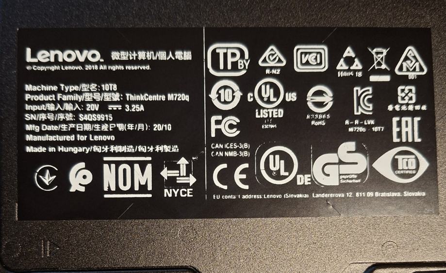 Lenovo mini pc i5-8400T 6 jedrni, RAM 16GB DDR4 2666mHz, SSD 256Gb, Wi