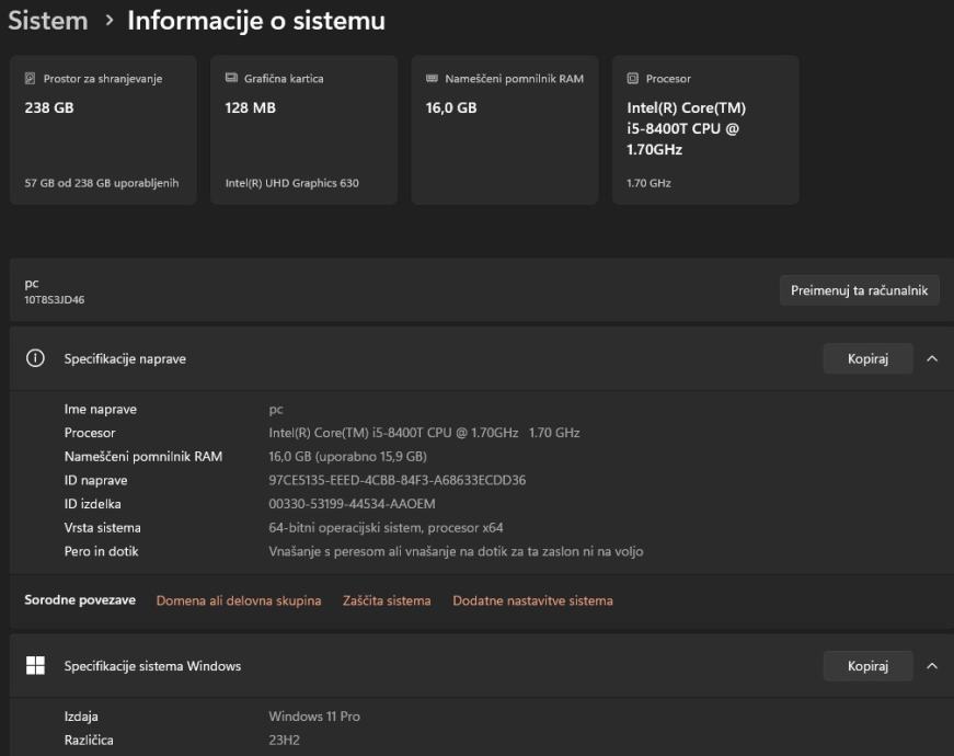 Na novo nameščen licenčni Windows 11Pro, 64bit, Slovenski
