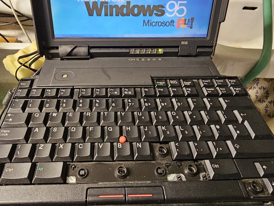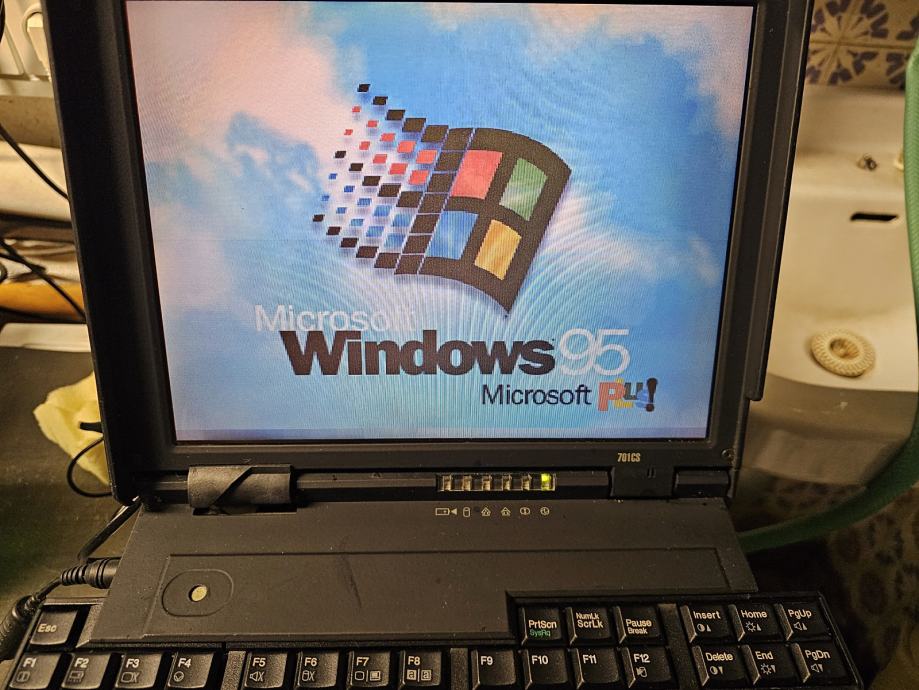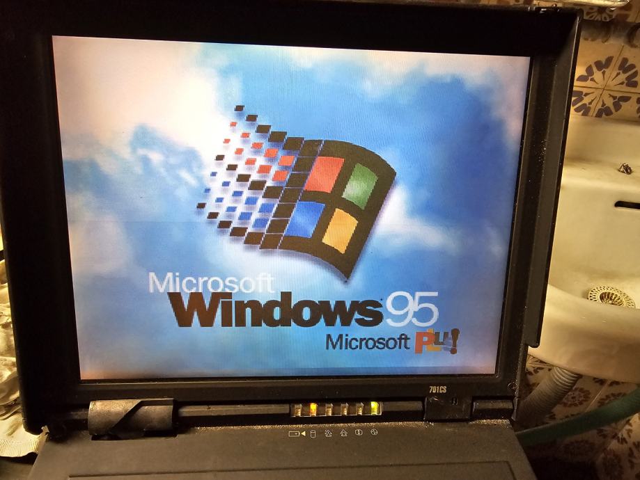 Na prenosniku nameščen Windows 95 kar je razvidno iz priloženih fotografij.
