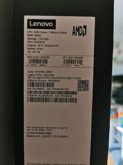 Zaslon: 16", 2560x1600 (WQXGA), 16:10, 165 Gs, brez bliskavice (mat)