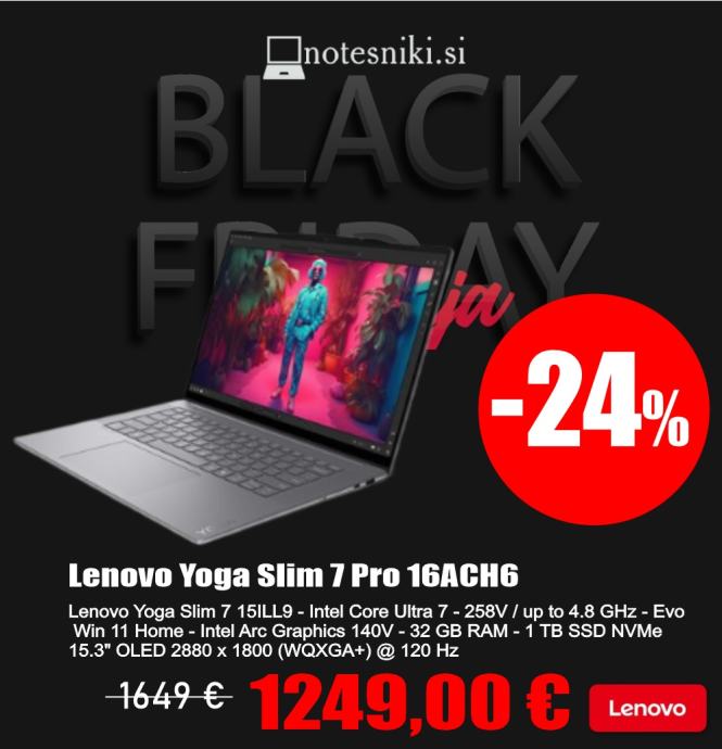 Premium OLED prenosnik Lenovo Yoga Slim 7.