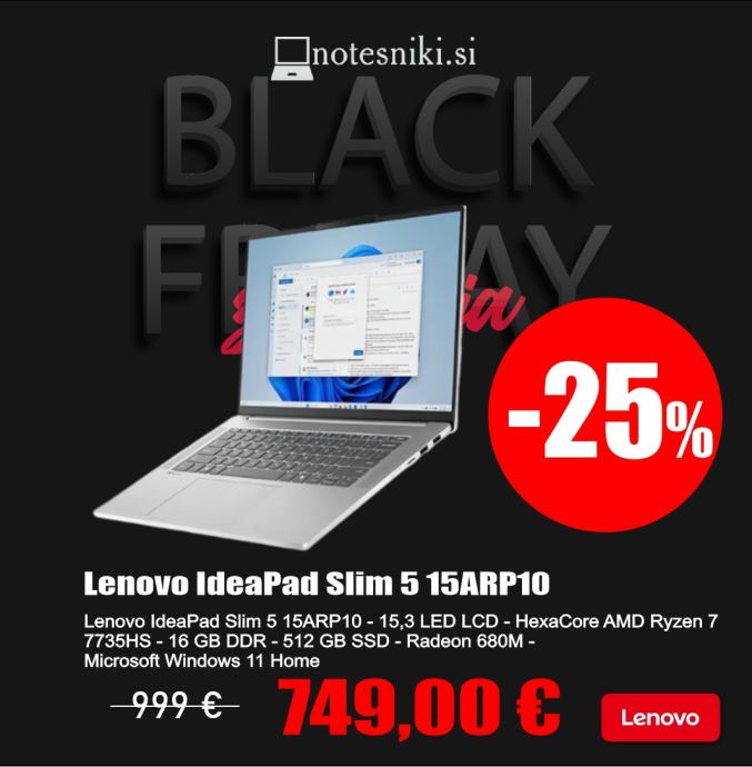 Multimedijski prenosnik proizvajalca Lenovo po akcijski ceni. Novi model. Tanek, eleganten in kakovostne izdelave.