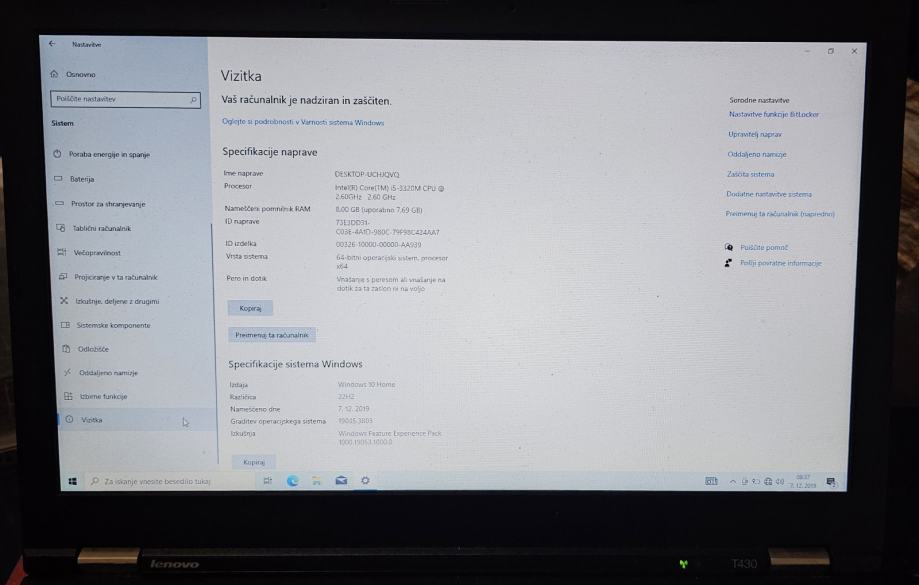 Prenosnik Lenovo ThinkPad T430 i5-3320 Ram 8gb SSD Disk 256gb 14,0"