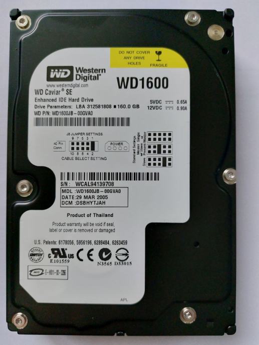 Prodam brezhibno delujoč IDE 3.5 disk 160 GB. Bil je v rabi kot rezervna shramba podatkov. Info SMS 041 958389.