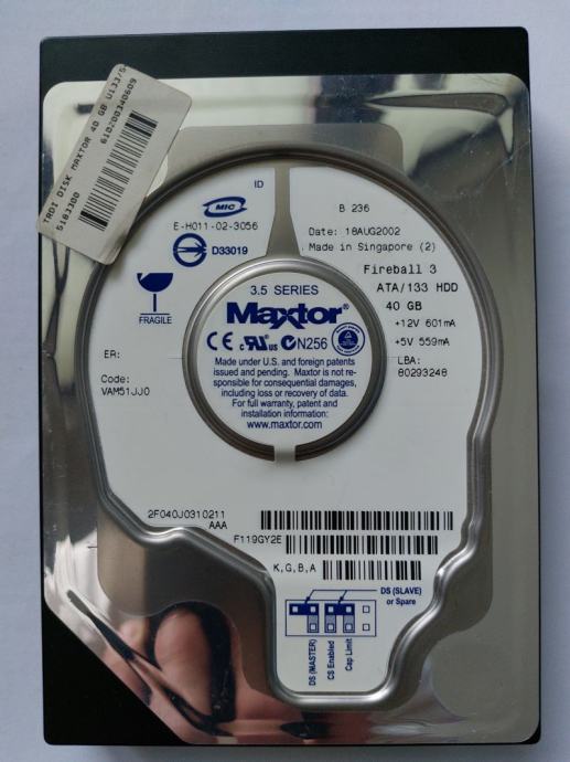 Prodam brezhibno delujoč IDE 3.5 disk 40 GB. Info SMS 041 958389.