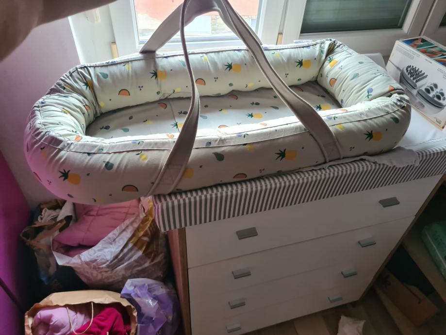 Podarim prenosno mehko plsteljico za dojenčka. Okoli je mehko ojačana, da se dojenček ne prekucne iz nje.