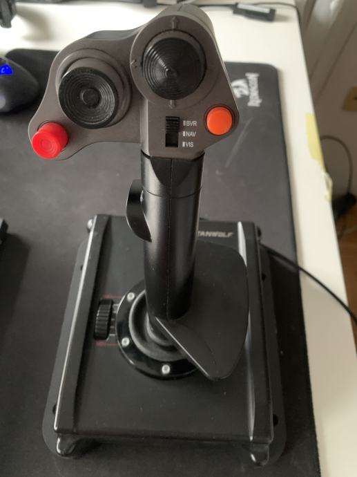 Prodajam Joystick Titanwolf Vulture. Uporabljen je bil za igranje flight simulatorja in deluje brezhibno.