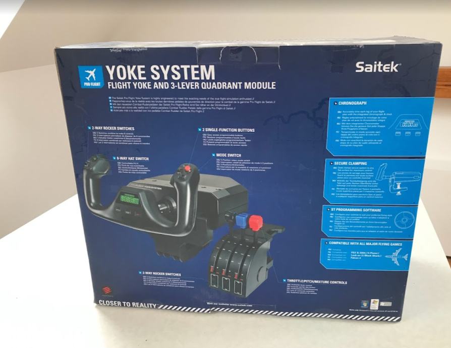 Yoke in rocke za upravljanje motorja za flight simulator prodam. Priklopijo se na racunalnik preko USB prikljuckov. Dela na Xplane in Microsoft simulatorjih, verjetno pa tudi na drugih.