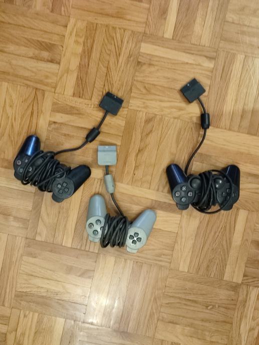 Prodajam rabljene Sony Playstation kontrolerje Dual Shock, trije kontrolerji. Kontrolerji so nestestirani ker nimam več konzole, delovanje lahko preizkusite. Cena je po dogovoru, primerni so za vse ljubitelje PlayStation iger.