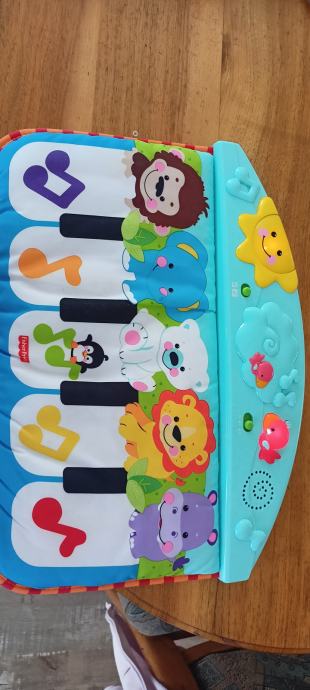 Zraven podarimo klavirček iz blaga, katerega se priveže na otroško posteljo. Oboje je odlično ohranjeno, kot novo.