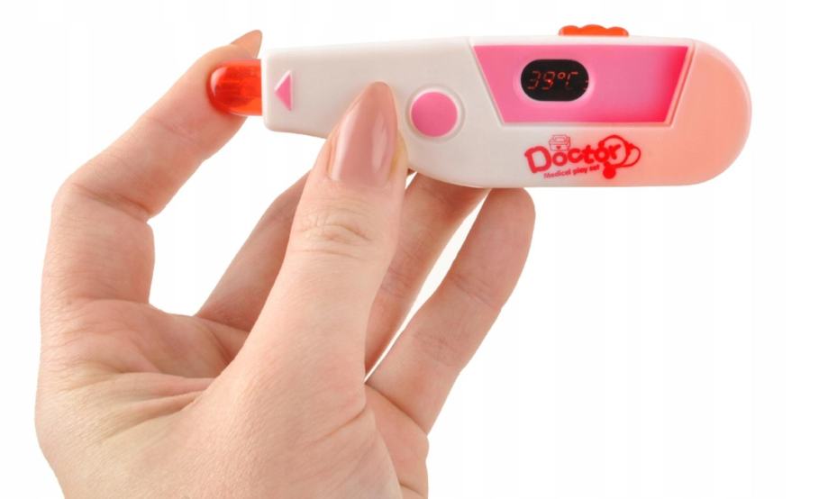Nadzorni zaslon ima različne zvočne gumbe, ki med delovanjem oddajajo zvoke kot prava naprava, npr. Barvite svetleče diode dodajo izdelku privlačnost .Ob pritisku stetoskop zapiska in lučka v obliki srca zasveti. Termometer in merilnik srčnega utripa imata drsnik za prilagajanje meritev in svetleč zaslon. Otoskop in zobno ogledalo sta opremljena z osvetlitvijo.Elementi so skrbno izdelani iz zdravju varnih materialov. Imajo gladke robove in njihova oblika omogoča enostaven oprijem in trdno držanje v roki.Komplet bo odpravil dolgčas in vam omogočil spoznavanje človeškega telesa. Spodbudila bo domišljijo, vas seznanila s poklicem zdravnika in ozavestila, da je treba skrbeti za svoje zdravje. Otrok lahko igra vlogo zdravnika ali pacienta ter z igro z drugimi v skupini razvija socialne in integracijske sposobnosti.Igrača je univerzalna in primerna tako za punčke kot za fantke.Odlična ideja za darilo za številne priložnosti!