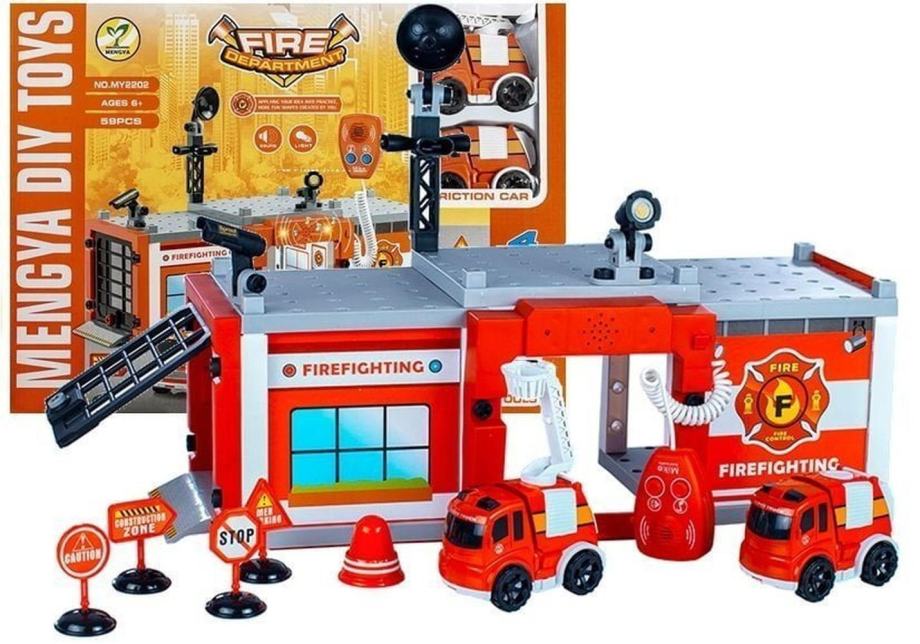 komplet, ki ga sestavljajo gasilska vozila in gasilski dom, bo odličen način za dobro zabavo vašega malčka s sorojenci ali starši. Z malo pomoči spremljevalca bomo v kratkem času zložili gasilski dom in nanj postavili najpomembnejšo opremo – anteno in kamere – slikovna navodila, nameščena na škatli, bodo to opravilo zagotovo olajšala. Posamezni elementi gasilskega doma in avtomobilov so mobilni, kar dodatno dvigne nivo veselja od zabave.