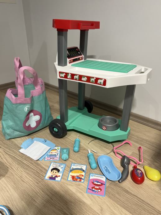 Prodam igrace za otrosko igranje veterinarja in zdravnika.Set vsebuje stojalo zapregled zivali kosaro plisatega kuzka,Zraven se komplet za zdravnika ter nekaj za zobozdravnika …