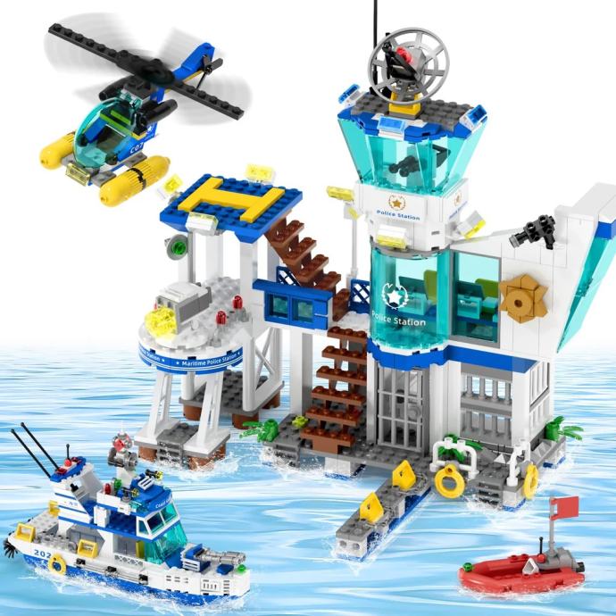 Kocke "Policijska postaja s čolnom in helikopterjem"
