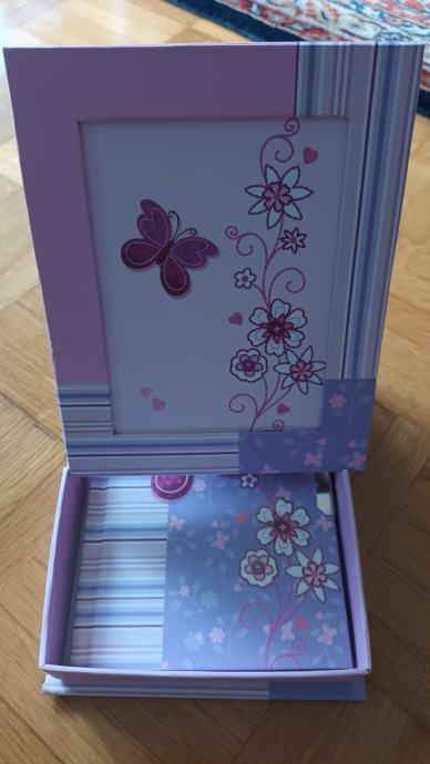 Perlice za sestavljanje zapestnic in ogrlic in dnevnik s ključkom, v škatlli z okvirjem za sliko, prodam.