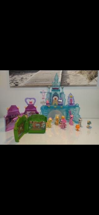 Prodam lepo ohranjen Pony grad s pony konjički in pripomočki. Zraven dodam še dve majhni hiški.