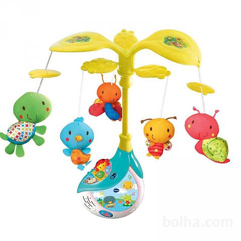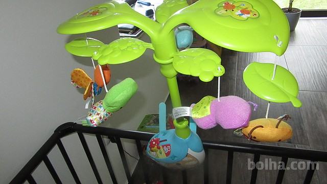 Ker smo bili pri prvorojenki super zadovoljni z njim smo ga kupili sedaj ponovno v novejši različici. Je kot nov, bil vsega skupaj samo ene 5x vklopljen, pa žal moj navihanček ni imel ravno interesa zanj. Ima veliko funkcij, med drugim uravnavanje glasnosti, vgrajen zvočni senzor, ki sproži uspavanke, kadar se otrok vznemiri ali začne jokati. Melodije so dolge 10, 15 ali 20 minut. Vrtiljak ima 40 melodij, 4 pesmi (vse je v angleškem jeziku) in 4 zvoke iz narave. Lučka spreminja barve in se nastavlja poljubno, posamično ali v kombinaciji z vrtiljakom. Kasneje, ko je otrok že večji, se samo odstrani vrtljivi del, lučka pa ostane z nastavljivimi paski pritrjena na posteljico ali stajico. Na voljo originalna embalaža.