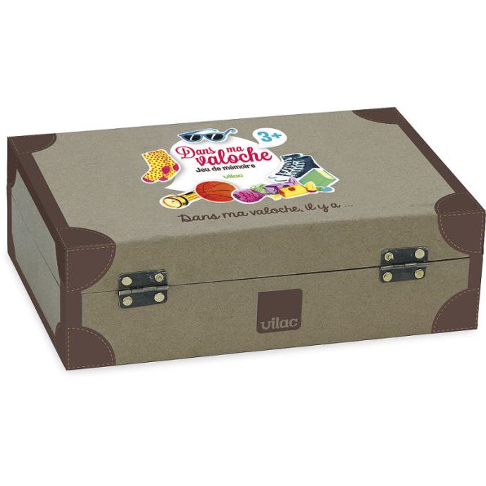 Kaj je v mojem kovčku? je spominska igra, ki se pogosto igra kot družabna igra za kratkočasenje na dolgoh poteh ali v čakalnicah. Ob družabni igri pomnjenja Kaj je v mojem kovčku? Vilac Memory In My Suitcase bodo otroci na zabaven način hkrati stimulirali koncentracijo in urili svoje pomnjenje.