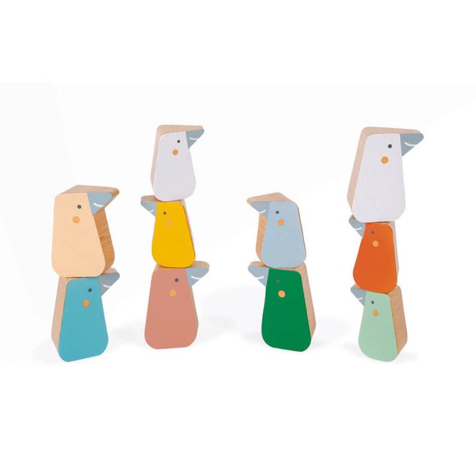 Otroci pri igri opazujejo barve ter s postavljanjem ptic iščejo ravnotežje na biku. Ptice lahko postavljajo na različne načine, s čimer se bodo resnično zabavali ter preizkušali svoje sposobnosti.