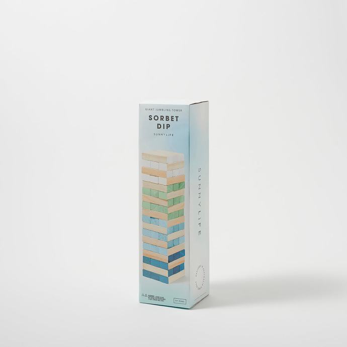 Lesena družabna igra Sunnylife Giant Jumbling Tower je vsem dobro poznana spretnostna igra pri kateri igralci izmenično s stolpa poljubno odstranjujejo lesene bloke in jih polagajo na njegov vrh. Igra se konča, ko se stolp podre. Igralec, ki poruši stolp igro izgubi. Naj se igra prične!