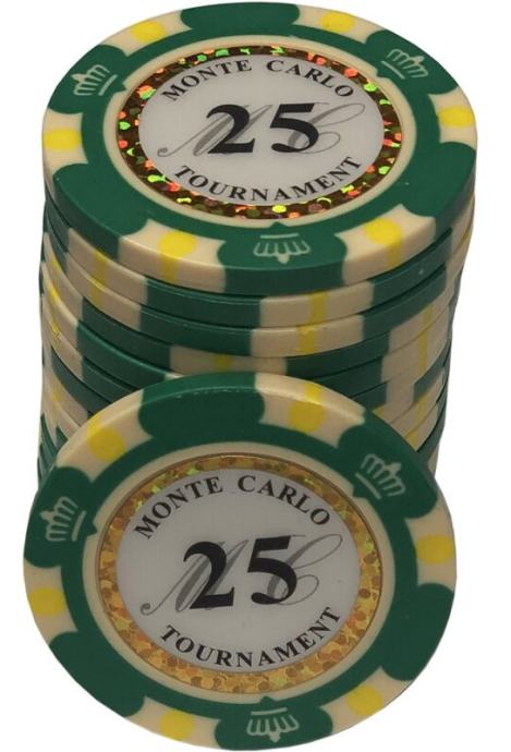 Monte Carlo 500 Premium poker set vsebuje visokokvalitetne glinene žetone (Casino kvaliteta), ki so natančno izdelani ter po teži umerjeni, da se enostavno zlagajo, oziroma prilegajo en na drugega. Zlata obroba okoli denominacije pa ustvari poseben efekt na poker žetonu in ga tako naredi še posebej privlačnega. Slika je simbolna, komplet vsebuje samo poker žetone. Žeton za delilca "Dealer Button" ter