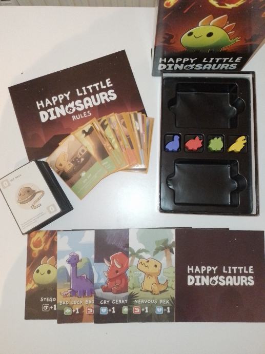 Happy Little Dinosaurs: Hazards Ahead, A 5-6 Player Expansion na voljo tudi le škatla s polovico kart za 5 €.