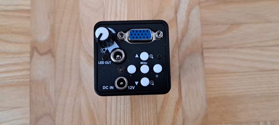 Yizhan VGA FullHD 13MP mikroskop (kamera), povečava do 130x z priloženo lečo, možen dokup drugih leč z premerom 25mm (C-mount). V kompletu je tui obročna luč, ki se jo priklopi preko mikroskopa samega.
