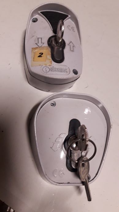 Preklopna stikala el. z ključavnico, gor dol, levo desno, ključi so zraven. Na primer zaklepanje garažnih, trgovinskih, skladiščnih, vrtnih vrat ali kak drug pogon. Priklop je potreben strokovnjak. 20 euro za kos