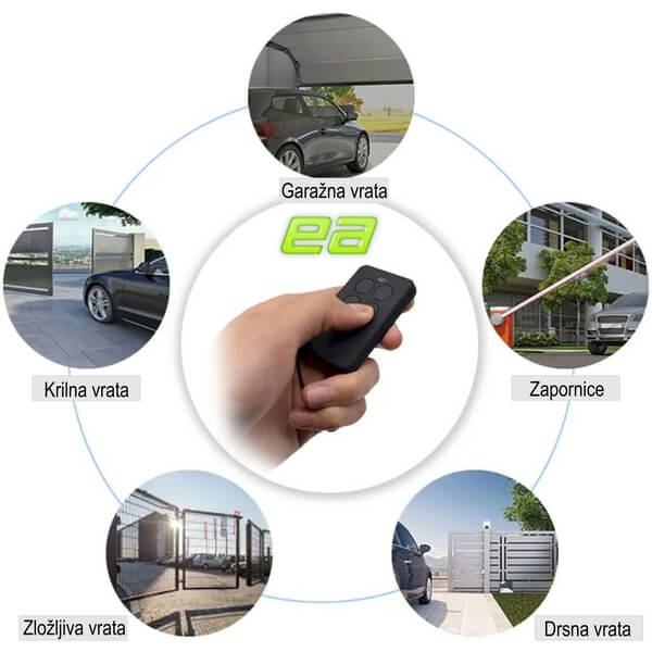 • **Samodejno skeniranje** frekvence in kode iz obstoječega daljinca