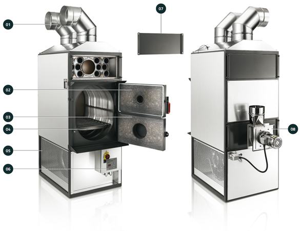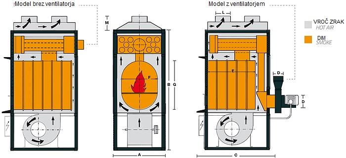 Dimenzije: 820 x 1.980 x 1.280 mm, dimnik premer = 180 mm