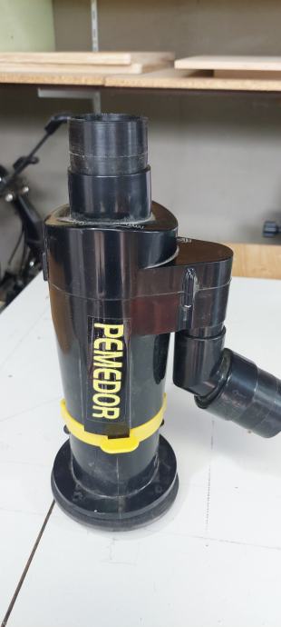 Ciklonski nastavek se montira na posodo pred sesalec in se poveže s sesalcem,cev iz posode pa priklopimo na odsesalni prikluček stroja. Tako vam ostane naprimer žaganje v posodi pred sesalcem sesalec je pa popolnoma čist.