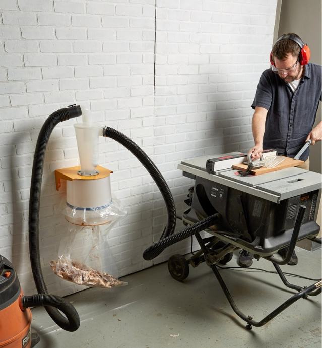 Idealen ciklonski separator za mizarje in hišne mojstre z izmetom v vrečo.