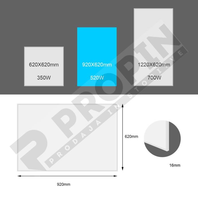 NOVO - IR grelni panel 520W, SLIM (15mm) - www.propin.si