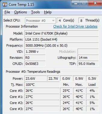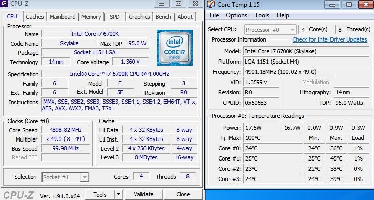 Intel i7 6700K 4,9 GHz, 2x4GB DDR4 2400 MHz, Gigabyte Z270P-D3