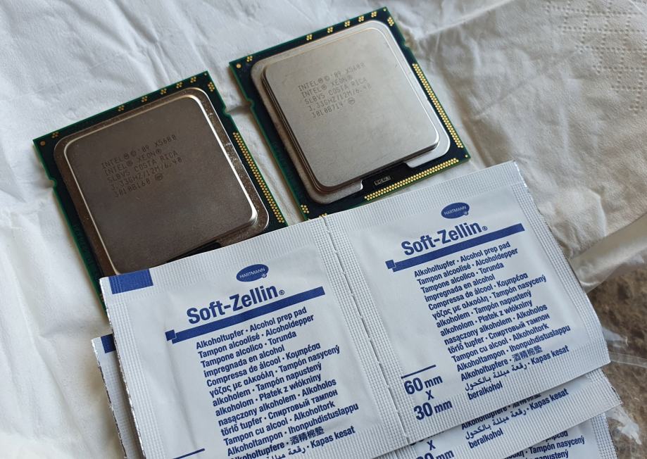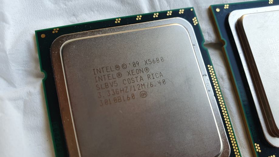 Zaradi neuporabe prodam 2x procesor Intel Xeon X5680 12-Core 3,33 GHz. Je v bistvu upgrade kit za Apple Mac Pro 4.1 ali 5.1 od letnika 2009 do 2012. Lahko se jih pa seveda uporablja tudi za klasične PC-je / serverje. Zraven dodam še ARCTIC MX-4 termično pasto in alkoholne robčke za čiščenje stare paste.