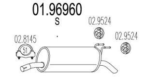 Izpuh Fiat Multipla. Letnik: 99-10. Motor: 1.6 16V. Zadnji izpušni lonec. Teza 6 kg, Dolzina 730 mm