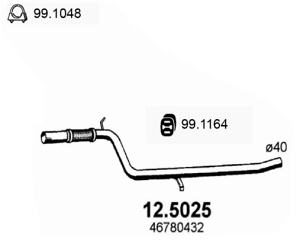 Izpuh Fiat Panda. Letnik: 80-04. Letnik: 01-12. Izpušna cev. Teza 3,3 kg, Dolzina 1790 mm, Kraj vgradnje spredaj, za srednji glusnik