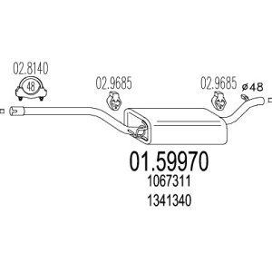 Izpuh Ford Focus. Letnik: 98-04. Motor: 1.6 16V. Srednji izpušni lonec. Teza 8,73 kg, Dolzina 1350 mm.
