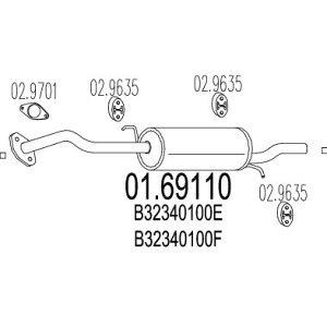Izpuh Mazda 323. Letnik: 89-94. Motor: 1.3 , 1.6 , 1.8. Zadnji izpušni lonec. Teza 8,96 kg, Dolzina 960 mm.