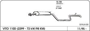 Izpuh Mercedes Vito 110 D. Letnik: 95-. Lastnosti: dizel, komplet.