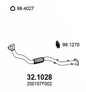 Izpuh Nissan Terrano I/II. Letnik: 87-06. Izpušna cev. Teza 3,1 kg, Dolzina 1250 mm, Kraj vgradnje spredaj, za srednji glusnik.