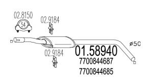 Izpuh Renault Megane. Letnik: 95-06. Srednji izpušni lonec. Teza 4,8 kg, Dolzina 1150 mm